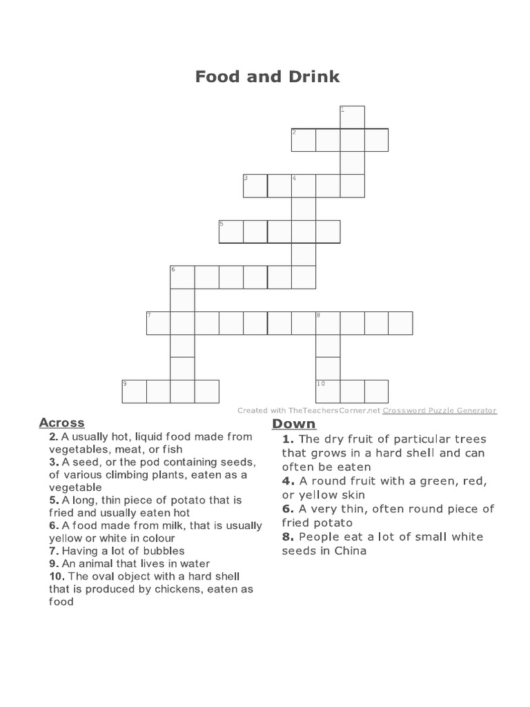 Food and Drink Crossword PDF